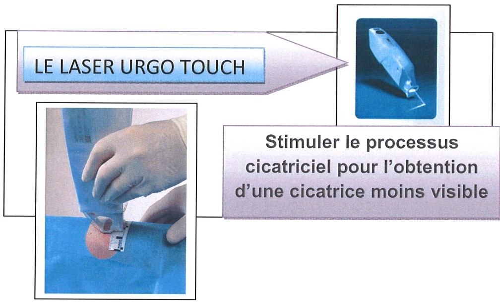 Le laser UrgoTouch est indiqué dans le traitement des cicatrices chirurgicales, il vise à améliorer le résultat cicatriciel en une seule séance, en agissant dès la fin de l’intervention avant la phase inflammatoire.